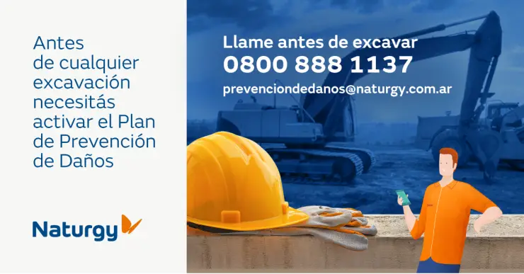 Para esto, Naturgy cuenta con un Plan de Prevención de Daños, el cual contempla la entrega de documentación sobre la existencia de las instalaciones de gas, asesoramiento en obra y un manual explicativo con recomendaciones sobre cómo realizar trabajos de movimientos de suelos en forma segura. Este manual está disponible en la web de la empresa (Apartado Prevención de Daños - https://www.naturgy.com.ar/prevencion-de-danos/ ).
